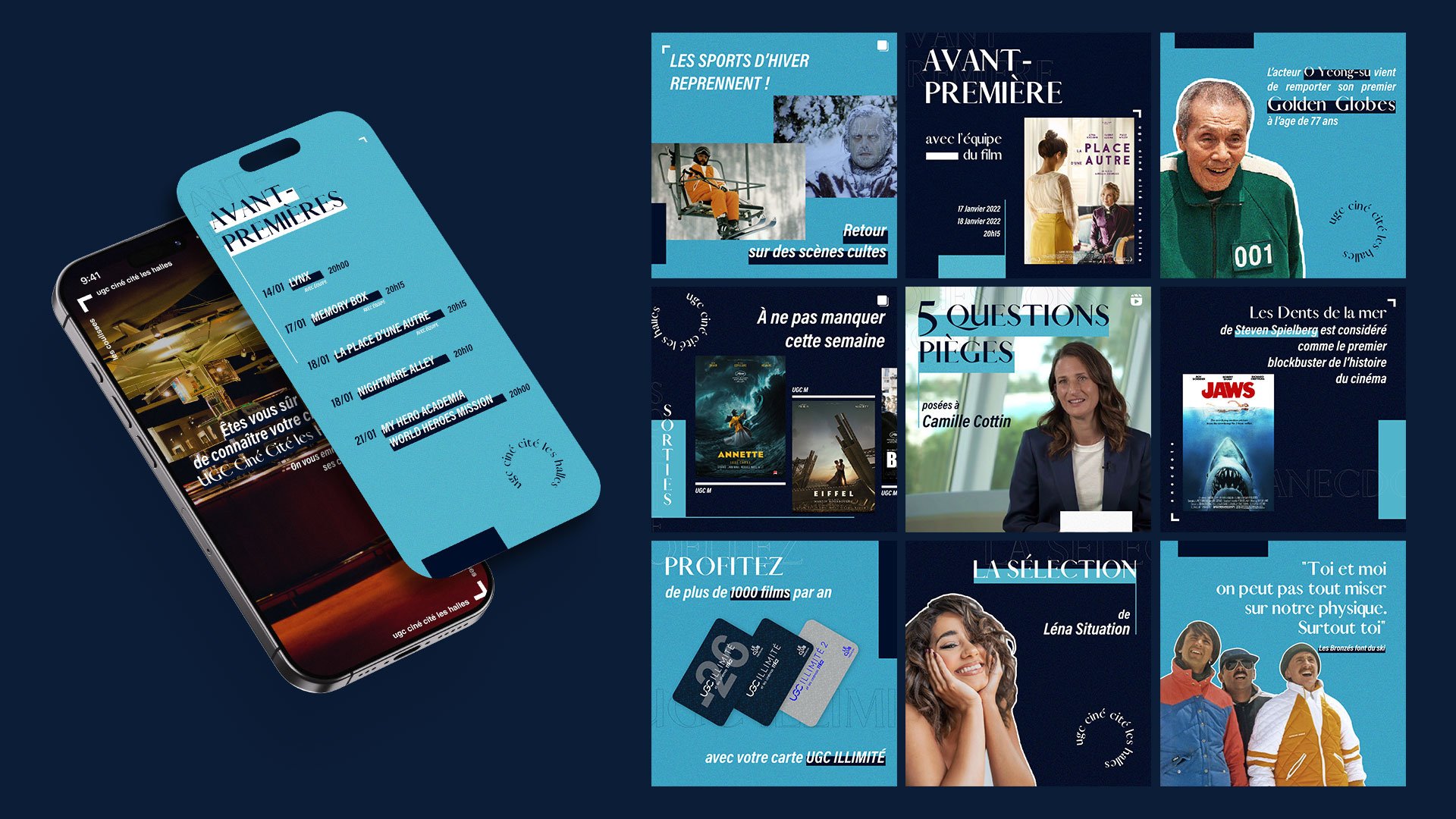 J’ai travaillé avec UGC sur la communication de leurs différents cinémas, en créant du contenu pour leurs réseaux sociaux. J’ai notamment travaillé sur les avant-premières, réalisé des interviews dans le cadre de la série « Les confidences d’un·e abonné·e UGC Illimités », et conçu des visuels promotionnels diffusés sur les écrans de cinéma.